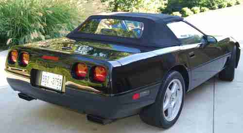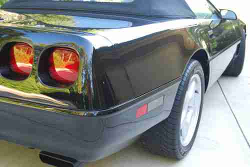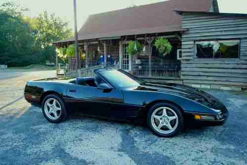 This is a stunning six speed 1996 Vette convertible! There were only two triple black vette convertibles made in 1996 with a Grand Sport engine with every option Corvette offered that year! This car is flawless with everything original from the factory and in perfect working order! The car has always been garaged and covered when stored. The hardtop is like new and the soft top still has the original sheen just like the day it came from the factory. This car will come with the original window sticker, sale brochures, and the original stock wheels that have never been on the road. This car is an amazing experience!