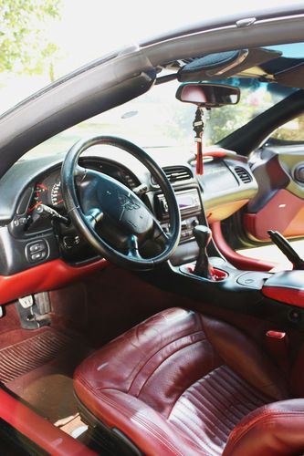 Beautiful 1998 Chevrolet Corvette Coupe with less than 49k miles. Black with red interior, aftermarket exaust, newer ZR1 style wheels, newer clutch and brakes. This car was bought by us for our son for his 16th Birthday with less than 25k miles on it. He now is 20 and has 2 beautiful girls! This car is no longer his priority and he needs a car with a full back seat and 4 doors. For a teenager I'd say he took exceptional car of this car!