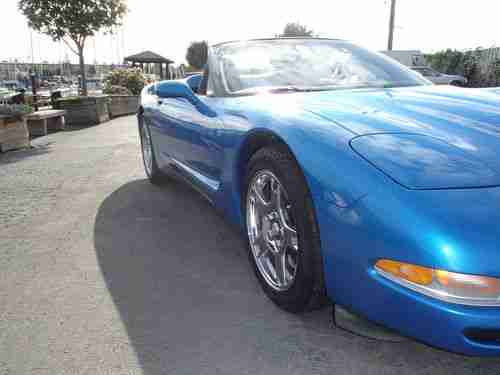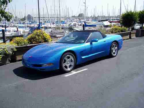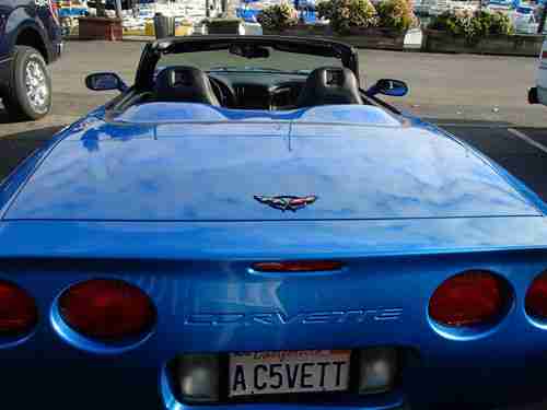 This is one beautiful fully optioned 1999 nassau blue corvette convertible, automatic, 49,187 miles, new Michelin zero pressure tires at 43,000 miles, the car has all factory options that were available and is in excellent condition, the car has a clean car fax, it has not been driven in the rain for the last 11 years that I have owned it, the car comes with a matching color bra and mirror covers, a performance air intake, performance controller and chromed stainless steel exhaust tips. The car has spent its entire life in California. The Blue Book value on the car in excellent condition is $22,500.