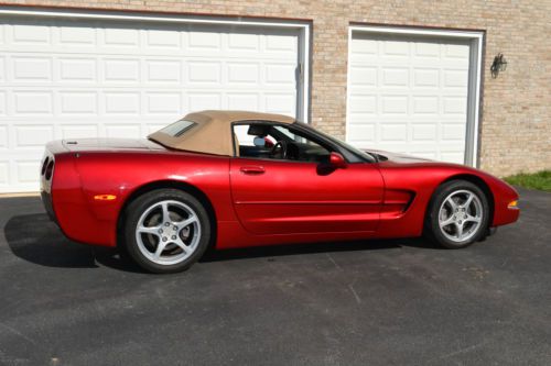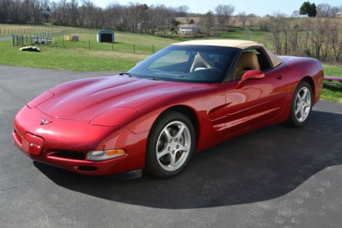 Beautiful Magnetic Red Corvette Convertible Only 28,549 miles. One owner, always garaged, never driven in bad weather. Comes equipped with standard convertible top Plus custom Carravagio fiberglass hard top. Preferred Equipment Group 2 with Heads Up Display, Adjustable Sport bucket Seats, Convertible top with Glass Rear Window. Six Speed Manual Transmission Bose Sound System Fog Lamps. Paint is near perfect condition. Hard top only 30 lb installs in minutes, makes car resemble ZO6 model. Have original window sticker Plus factory build sheet.