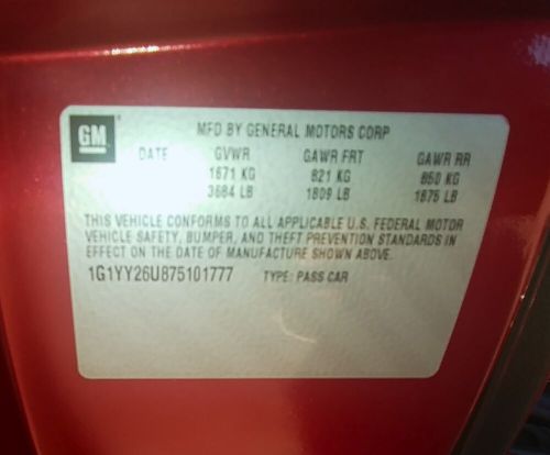 VIN (Vehicle Identification Number): 1G1YY26U875101777