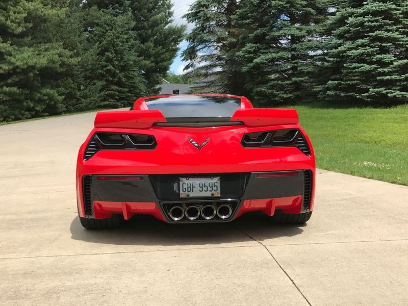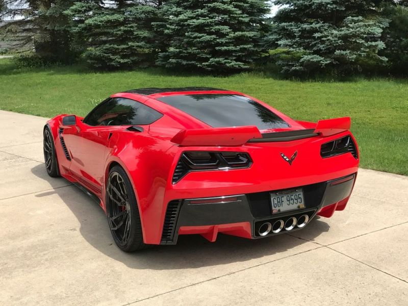 Body Modifications: Entire body was replaced with 2016 Corvette Z06 widebody in late 2015/early 2016. Finished in Corvette Torch Red, with ZERO orange peel and 7 coats of clear. The finish on this vehicle cost $15K!. Custom finished torch red and exposed carbon fiber rocker panel extensions, rear spoiler and front fender extensions. Custom torch red and exposed carbon fiber RKSport Z06 Extractor hood with airbrushed graphics on carbon fiber underside. Custom, black diamond finish PUR 20" dia (front) and 21 in dia (rear) wheels with Pirelli tires. Full hood, front bumper, front and rear fenders, rear quarter panels, rocker extensions, mirrors, front spoiler and rear bumper are covered in Xpel self-healing clear high gloss film, Showstopper Airbrushed Corvette Emblems (front and rear), Oracle Sidemarkers w/Ghosted Torch Red finish.