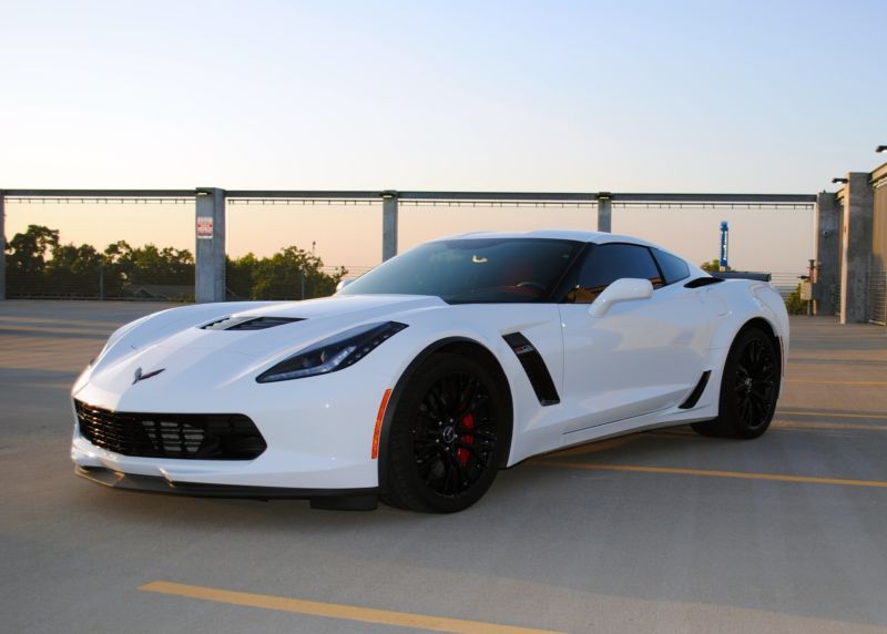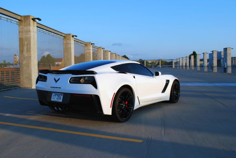 2015 Corvette Z06 3LZ with a 7 speed transmission with active rev match. White exterior with black accents, red