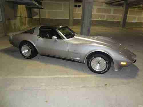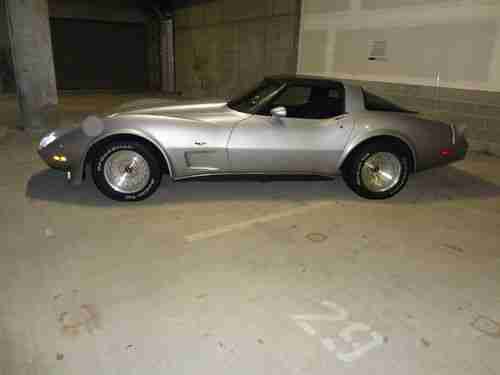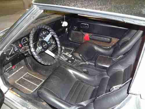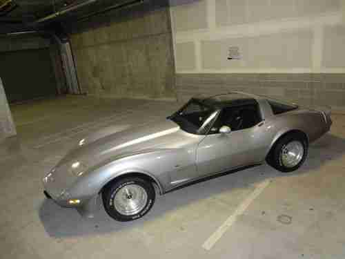 79 Corvette, silver/black w glass t-tops, 350cid (63,000 mi on engine), Muncie 4sp (63,000mi on rebuild), 3.36 rear end, front and rear spoilers really add to the lines of this car and look great, the suspension is tight with big block sway bars, gas shocks and nylon bushings, Enkei aluminum wheels w/BFG tires (8.5x15 front 10.5x15 rear), aftermarket stereo w/6disc player...