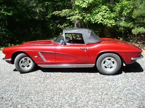 This 1962 Corvette is a rare find and is in great shape. This is a 3 owner car and was totally restored in 1989. The original engine, transmission and rear end where removed and totally restored. Along with the mechanical restoration the car was repainted close to its original color. Pictures of the restoration process are available. This corvette has not been raced or abused in any way. This classic automobile is a great driver and is original except for the wheels, radio and shifter. The original wonder bar radio comes with this car as is the original shifter. Also approximately $5000 in extra parts such as a brand new air condition unit still in the box, original chrome pieces that were removed during restoration. Original owners manual and shop manuals. This four speed manual shift car has a 327 motor with 250 horse power. This car, has soft top and hard top and both are in excellent shape. This Corvette has 127,000 miles and has been driven less than 1000 miles since the motor was restored. Car has been garage kept since the restoration in 1989. The only known flaw on this car is on passenger side front bumper a small spot starting to corrode. This vehicle is sold as is and there are no expressed or implied warranties. This car will be shown by appointment only. if you have questions the owners phone numbers are 336-877-5431