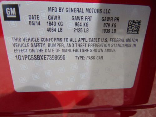 4dr sedan lt w/1lt low miles automatic gasoline 1.4l 4 cyl crystal red metallic