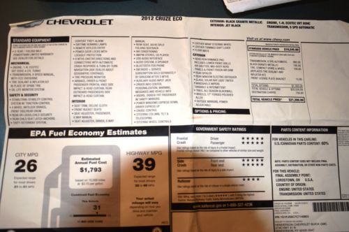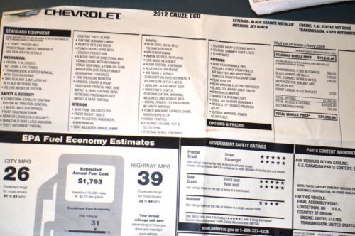 2012 chevrolet cruze eco sedan 4-door 1.4l 6-speed manual