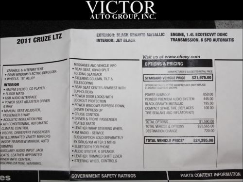Chevy Cruze Ltz Moonroof Pioneer Heated Leather Bluetooth Sunroof Black Granite on 2040-cars