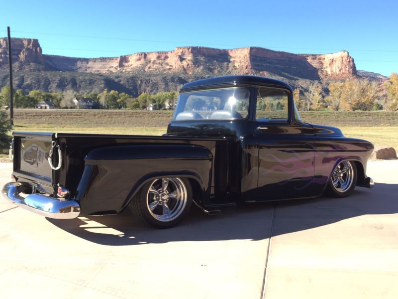 1955 CHEVY BIG BACK WINDOW, STREET ROD, STRAIGHT BLACK PAINT THAT LOOKS INCREDIBLE WITH VERY NICE FLAME PAINT