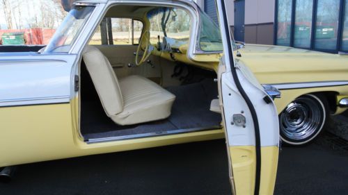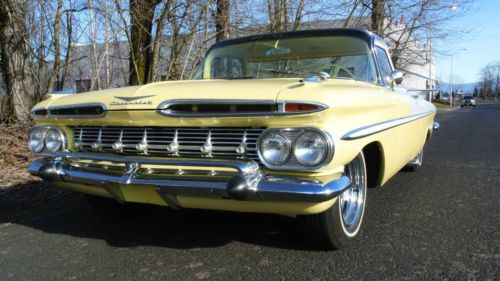 This car has been carefully restored. The paint job alone took three years to complete and cost over $8,000. Straight body, all new stainless steel trim, re-chromed bumpers, and new rubber. The car sits on deep chrome reverse wheels and white wall tires. Re-upholstered interior, re-covered and re-conditioned 1959 El Camino seat with refurbished springs. New carpet. The engine is a big block 348 with a hydro 3-speed column shift and 4-barrel carburetor. The transmission is a stock powerglide. New front end and steering, completely replaced with all new components. Steering box and alignment completed by Schroeder's Custom Speed. Body is laser-straight with new glass and new tire-wheel combination. This El Camino is completely stock. It is fully restored, and runs and looks great. I have owned the car for over 12 years and have stored it carefully in my heated studio. Price is market competitive for this beautiful car at $26,000. |