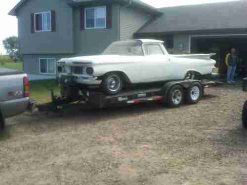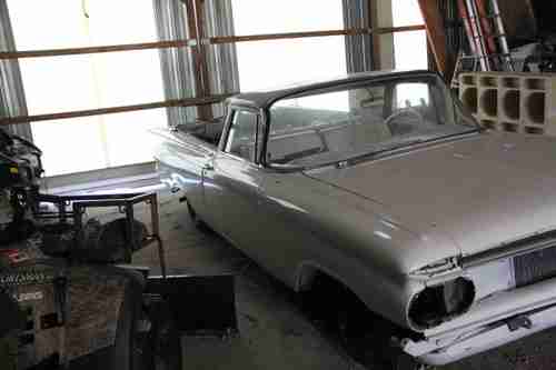 1959 elcamino , rebuilt 327, automatic. Has had some panel work done on the driver side , passenger side looks good free of panel replacement. Bed is solid with just a few pin holes up by the front of the box. Driver side floor pan will need some work , looks like someone at sometime had put a pc of metal over a little part of it . Passenger side floor pan is good. Other than that the car is solid. Car comes with original steel wheels with hub caps. Have 80 % of the chrome trim . I believe its missing some of the bed trim .. All glass is good except for the passenger door has a crack in it and a little wing window also has a small crack in it . Car does not run , needs the carb and distributor put on it , Can have it done for the fee .... It comes with 2 grills and some other extra stuff off another car . Frame is solid, has drum brakes . Full exhaust . Chrome bumpers