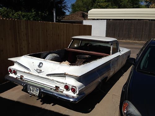 This is a 1960 El Camino, this is a Barn find I bought this from a rancher that parked it for a father son project that never goy dune. the trucks body is in good shape the rear right side has a little rust it needs in floor pans and a new bed pan, the motor turns free, I was told it is a 327 chevy with a power glide tranny the farmer said it does run..... I bought the truck thinking I would restore it but I really have no time to start another project. what you see is what you get please if you bid plan on taking it these El Caminos are had to find, i have been looking for one for a long time and this is the best one i have found. If you have any questions call me or email 806-335-6102 I do have the origanial title.....