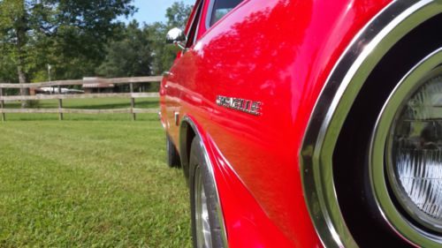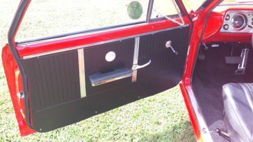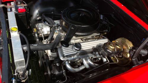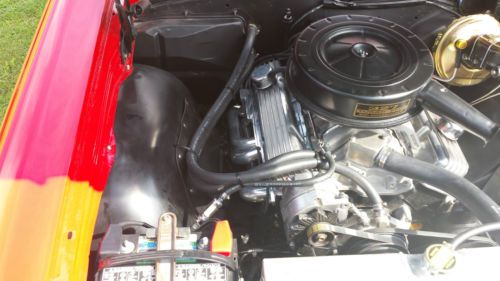 I did an extensive restoration on this car. I did not remove the body from the frame ( it just didn't need it), but everything else has been completely restored, replaced, or rebuilt. All surfaces underneath vehicle and inside body panels have been coated with POR 15. I'll try to list some of the new parts: quarter panels, floor pans, front and rear bumpers, complete grill kit, most emblems, exterior door handles, exterior mirrors, all locks, gas tank, drive shaft, complete dual exhaust system, aluminum radiator and electric fan, front power disc brake conversion, brake master cylinder, brake proportioning valve, wheels, tires, all new interior including seat foam, seat covers, door panels carpet, headliner,glove box liner, instrument bezel, all new instruments, shifter, steering wheel (it comes with the original restored steering wheel as well), all new rubber seals and weatherstripping. The engine and transmission have just been completely rebuilt. Transmission is a 350 turbo and engine is a 350. Some of the features of the engine rebuild are: it has the original 327 double hump heads. Flat top pistons, oem camshaft, edelbrock aluminum intake, Holley650 dual line carb, ceramic coated headers, roller rocker arms, and nice aluminum finned valve covers. The car has power steering and brakes and drives like new. It really drives wonderfully. The paint is new and very nice. The wheels are made by Newstalgia and the are 17" on front and 18" on rear. I help with shipping/delivery, but the buyer is responsible for all shipping costs. |