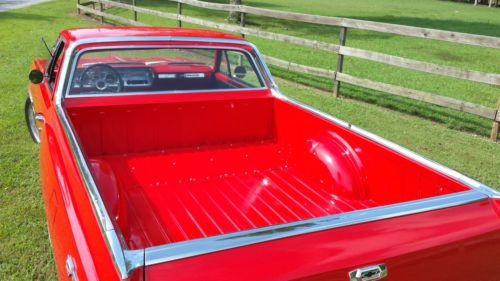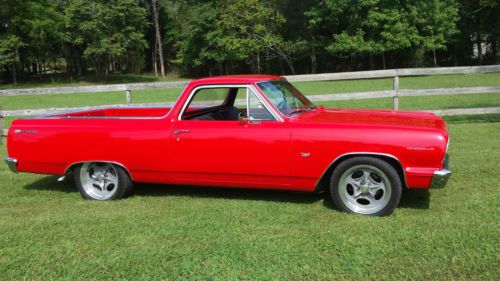 This is a freshly restored '64 El Camino. It has a few items that I have not bought for it yet, but they are all readily available and not terribly expensive. The are the "Chevrolet" emblems on the hood and tailgate, the hood spear, a radio, license plate lights, and door lock knobs.