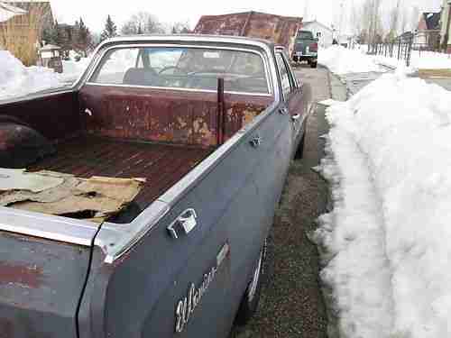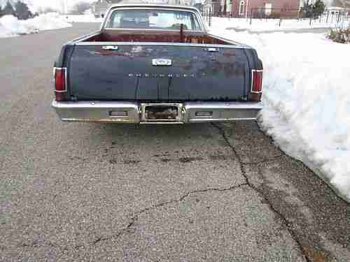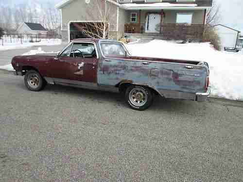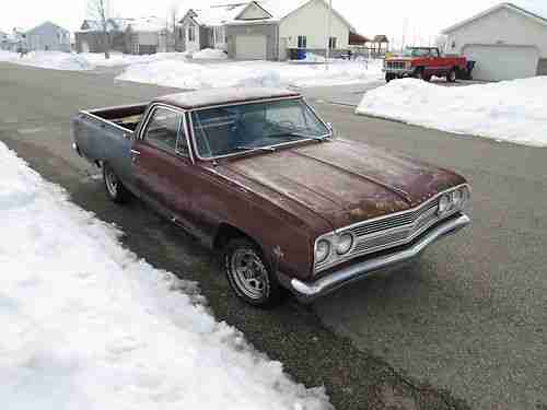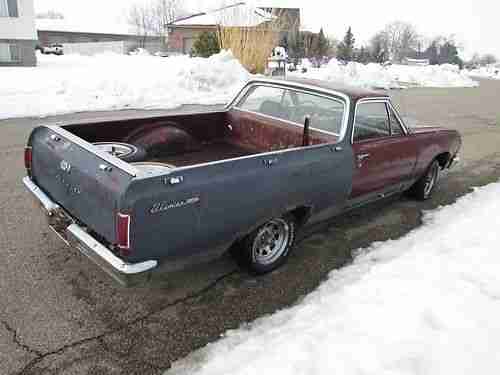 1965 Chevrolet El Camino Custom. This 1965 El Camino has the original 283 Cubic Inch V8 and Four Speed Floor Shift. It runs and drives and is currently registered. All of the lights, including the turn indicators, work as they should. The horn works and the car can be driven. I have a clear Utah "Original Title" in my name. The El Camino comes with two spare tires on original rims. It has a new exhaust system and the motor runs and sound good. Please look closely at all of the photos. The body has rust and will need substantial body work. This is a "no reserve auction." If you bid $1000.00 and no one else bids, you will own the El camino.