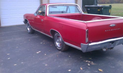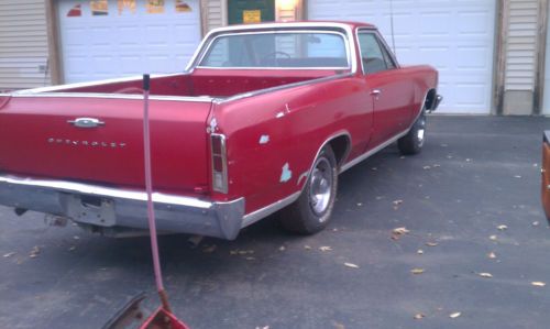 66 el Camino .Needs restoration. Small block v-8, dual exhaust. Was a/c car, automatic with console shift and clock, tilt wheel, bucket seats SS hood. 14" rally's, . Good luck bidding!