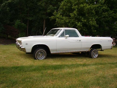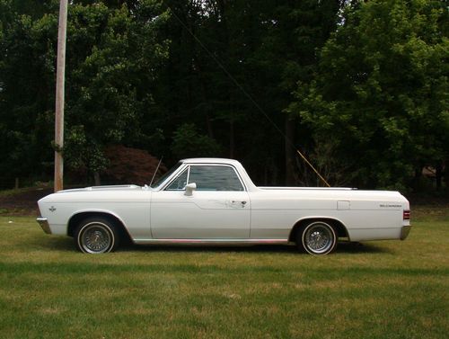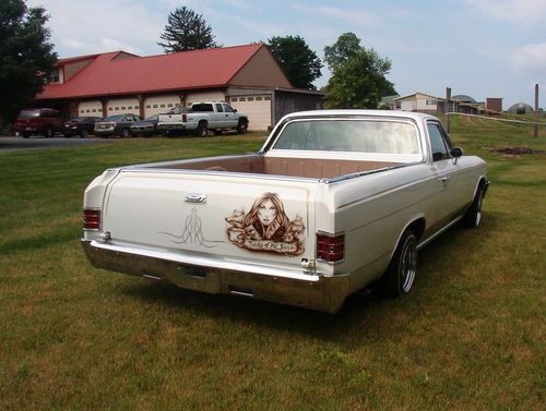 1967 Chevrolet Elcamino Custom Show Car. This car has had a lot of money invested. It has custom paint,full hydraulics, custom interior. The car was from southern California and is a very solid car. Work that was done to the car was done professionally from custom shops in California. The car was built as a show car, and made the January 06 Low Rider magazine. The body on this car is perfect, there is only one chip in the paint (see pictures) other than that the paint is perfect. It is sprayed in PPG base coat/ clear coat and has custom air brushed grafics. All the chrome and stainless was redone and look great. The car does have full hydraulics and has Zenith California knock off spoke wheels. The interior has custom door panels, headliner, and seat. The dash is original, car has factory AC but is not hooked up under the hood. The motors is a rebuilt 350, runs great.A couple of thing with the car, it was a show car so it was not driven, it was taken to a show. There is no wipers, the wiper motor is there but it is not hooked up the wiper blades are off and custom caps were put on. The car was trucked into Pennsylvania in 2007 It was stored in a warehouse it was not driven by the last owner. The car runs and drives good, it needs batterys for the hydraulic system. sitting around they went bad. There is a reasonable reserve (much less than what has been invested) so this is a chance to have a custom car you only just dream about at a fraction of what it cost to build. If you have no feedback please email me before bidding. Please be serious, and have the fund to pay for it.