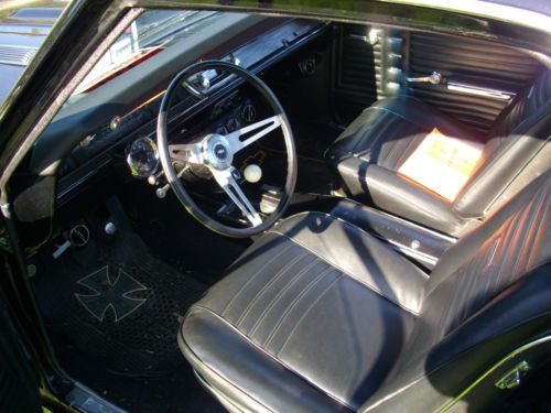 Excellent condition, with big block 396, 4 speed, with Hurst shifter, front disc brakes, tilt wheel, vintage heat and air, black finish with black bucket seats and console, up graded radio, 15x7 rally wheels, all glass is in great condition, car rides and drives great, big aluminum radiator,