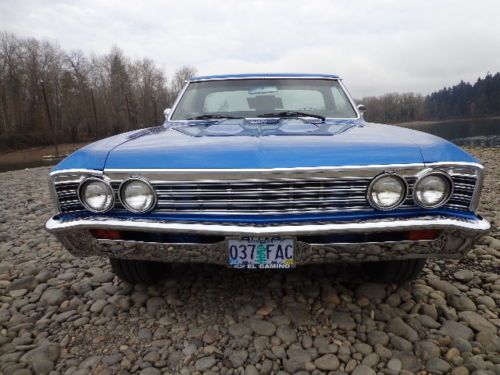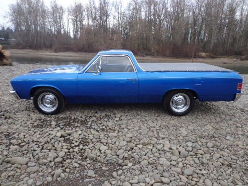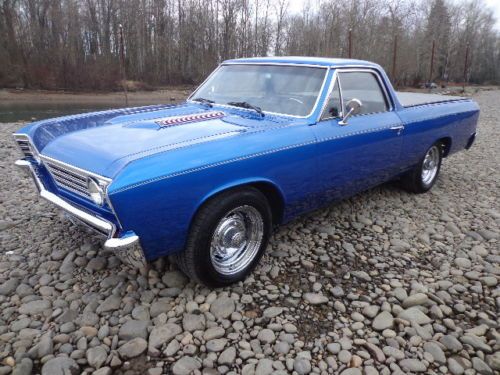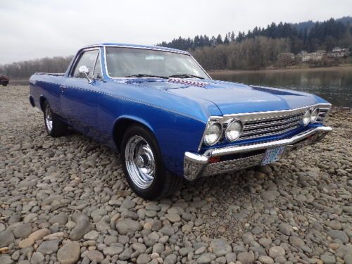 OFFERED UP AT NO RESERVE !!!! THIS STUNNING 1967 CHEVROLET ELCAMINO VERY RECENT RESTORATION HIGH QUALITY PAINT , 3LATE MODEL 300CI V8 TURBO 350 , EDELBROCK CARB AND INTAKE , ENGINE CHROME KIT , DUAL EXHAUST GLASS PACKS , BUCKET SEATS , BIG BLOCK HOOD , AFTERMARKET GAUGES , POWER STEERING , POWER BRAKES , TILT STEERING WHEEL , CUSTOM STEERING WHEEL , CHROME RALLY STYLE WHEELS WITH GREAT TIRES , COMPLETE NEW INTERIOR , THE LIST GOES ON AND ON THE CAR RUNS AND DRIVES OUT GREAT WITH NO KNOWN ISSUES , THE MARINA BLUE PAINT LOOKS OUT STANDING WITH A ARROW STRAIGHT BODY , THE FLOOR PANS WERE REPLACED AND LOOK GREAT UNDERNEATH .