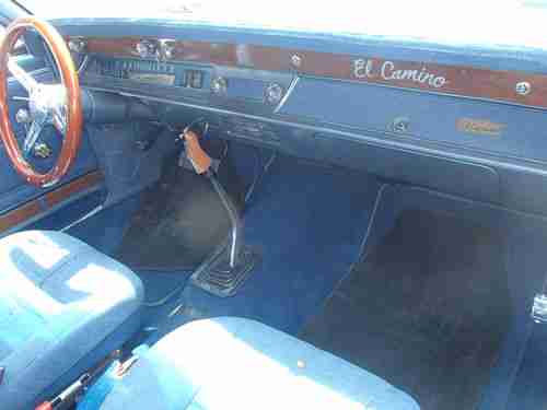 This 1967 El Camino is in good condition inside and out. The interior is professionally installed and designed in blue jean with El Camino stitched in the seats and dash. The body is rust free with new quarter panels recently installed. It is primered black and gray in color with American Racing wheels and red line tires. The car has a freshly rebuilt 454 engine and 4 speed Muncie transmission. The car has stainless exhaust, posi track rearend, disc brakes on the front, power brakes and no power steering. This El Camino is a project car and still needs a little tuning such as the shift linkage and clutch needs adjustment. It is a fresh rebuild and needs a few small bugs worked out but is overall in good condition. The car has many new suspension parts and runs and drives well.