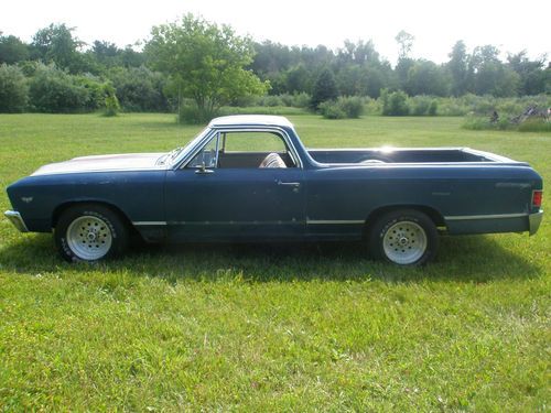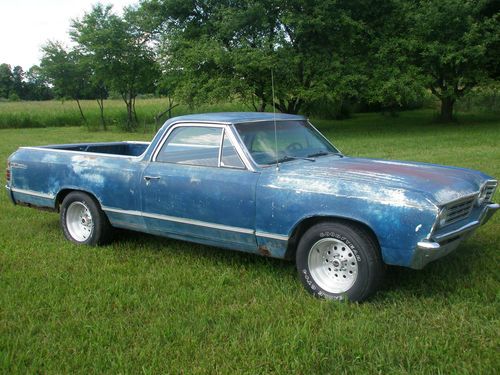 I HAVE UP FOR SALE IS A NICE RESTORABLE 1967 CHEVY EL CAMINO. I BELIEVE THIS TO BE AN ALL ORIGINAL 283 2BBL 2 SPEED ALL MANUAL ALL DRUM BRAKE TRUCK IN DRIVING CONDITION.