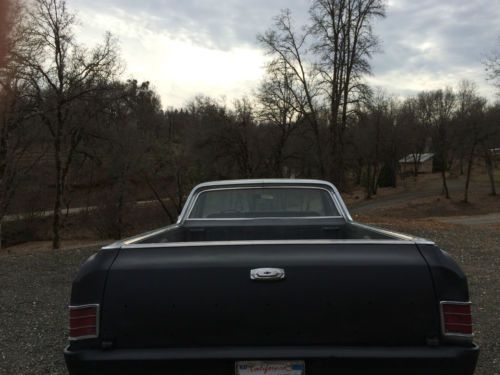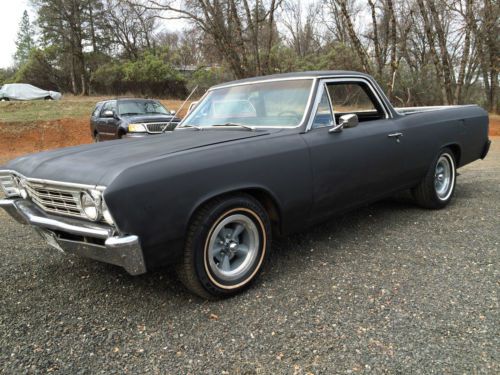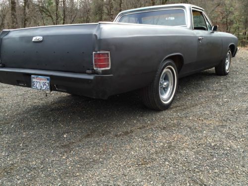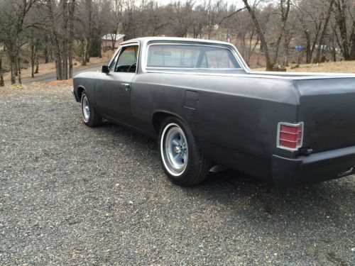 1967 El Camino 350 vortec engine and 2 speed powerglide Running driving project clean California title has very nice interior and headliner seats are comfortable when driving has nice mag wheels and drum brakes with good life left in them and also has power steering very nice and strait body and no rust under car and all floor braces are solid. It is a nice project and needs a few things to make it a very nice car for someone it needs front and rear window weather stripping and needs door weather stripping. transmission probably needs to be rebuilt soon. but other than that its a good car and a good value for what it is considering a lot of other cars that are roller projects with no engine or trans are getting expensive. Car is sold as is and all sales final