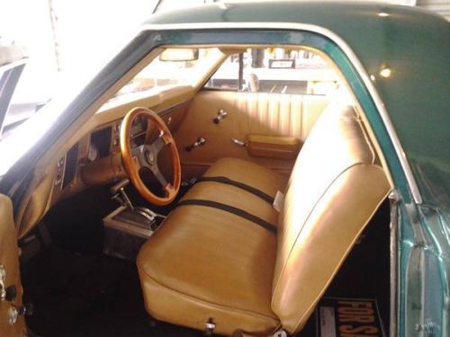 This 1968 Chevrolet El Camino 2 door is a great Collector's item. Just been painted (Forrest Metallic Green with a black hood stripe). This vehicle has been a great project for me and has been Garage Kept. I have priced it ready to sell. It has a very impressive Engine containing the following: Small Block 350 - 750 Halley Quick Fuel - Accell Distributor - 2.02 valves - 10.5 total compression - Edel brock chrome plated aluminum instake - competition Cam 280 Thumper - Double roller timing chain - Holman Headers - steel crank. .....Shift Kit......CORVETT SERVOS.....BLM Shifter Rear.........10 Bolt POSI............4:10 Gears..........New engine with only 5,000 miles. Price is negotiable. For More Information, please call: 434-532-3346 Payment/shipping will be discussed during phone call to me. |