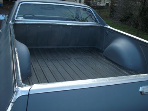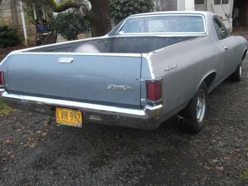 1968 Chevrolet Malibu EL CAMINO Small Block Automatic Transmission Holly 4 Barrel Headers Cragger style 14" wheels (Tires about 40%) New seat upholstery Glass is good (very small chip in windshield) Chrome is in good to fair condtion Odometer reads 90,968 (actual unknown) VIN # 136808Z100393 This El Camino has been off the road for a time. I put new points, condenser, rotor & cap. Runs good. Could use possibly rebuild carburator. It uses a bush button for starting (pretty cool). Kind of like a security system. When I pressure washed it, some of the old paint came off and I found out there was a nice older restoration done. So I sanded the rest of the paint off down to the primer and then put a new coat of primer on it. When this was done I found a little bondo at the fender areas and a small amount in the inside of the bed on the passenger side. Also there are two small holes in the floor and the drivers door has a small rust on the inside at the bottom corner (see pics). No carpet but floor has been painted. This is a great El Camino. I know it needs a few things fixed like the blinkers need attention and brake lights. Lower mount needs attention. Keep in mine this is a used rig but it doesn't look like it will take much to make a daily driver. There is some surface rust on dash and back of cab inside. No carpet. This is a binding agreement if you bid so please email me with your questions prior to bidding. If you would like to talk to me send your phone number and I will be glad to call you back. Though I'm no expert I try and describe the vehicle as best as I can. Please remember this is a used vehicle. This vehicle is sold "AS is, Where is" with buyer being solely responsible for doing any research needed or asking questions prior to bidding. Buyer is responsible for all costs and arrangements for the removal of the pickup from Seller. Vehicle must be removed within 14 days unless other arrangements are made with seller. Just keep me informed and communicate. PLEASE MAKE SURE AND CHECK SHIPPING PRIOR TO BIDDING. If you fail to check cost prior to bidding it is no reason not to pay for the vehicle. Your bid is a binding agreement. A deposit of $500 is due within 24 hours of auction close by Paypal and the balance of CASH within 7 days of auction close. If you need to make other arrangement contact me prior to bidding. Seller will not release vehicle or title until all funds are cleared. If you cannot do cash I will consider a wire. Yes I will sale to a international buyer. Happy bidding and thanks for looking. |