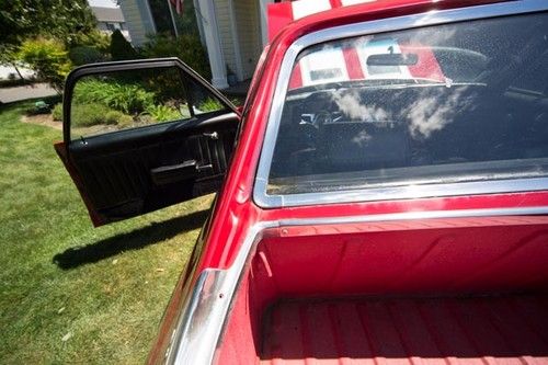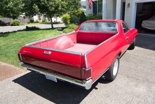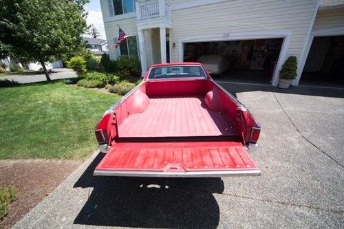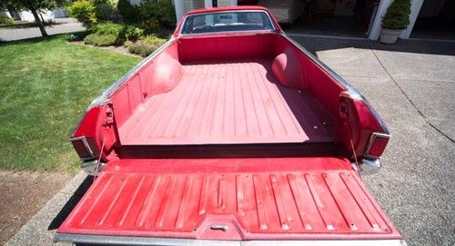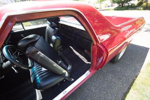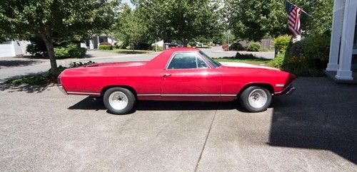 1968 El Camino 454 Big block, 400 Turbo trans Holley 770 Carb This car has been in the process of a complete restore.The dash was replaced due to corrosion all along the bottom of the windshield. The cam and lifters were replaced due to #4 lobe being rounded, new one is a mild cam from comp cams. The transmission works great, shifts fine. It has an extra capacity pan on it. All the brakes are new along with rotors on the the front. Front upper and lower a arm bushings and all body bushings, shocks.The Interior has a new headliner, a pillars covers, glove box, storage box, carpet, windshield, retro radio and much more. The engine runs great and starts first shot every time.. The rear end I think has 4.11's There is allot of new parts. We have all receipts and all the new parts listed have been in the last 2 years. Here is a list of the new parts: ENGINE Headers ( Hooker super comp - jet coated ), Cam and Lifters ( competition cam ), Distributor, Fuel Pump, Optima Battery, Speedometer Cable, Timing Chain Set, Timing Chain Cover, Fan belt, Thermostat (100 degree ), Stainless Steel Transmission Line, Transmission Pan ( Extra Capacity ) , Windshield wiper washer tank and brackets Body and Suspension Shocks, Sway Bar Bushings and Links, Body Mount Bushings, Door locks and keys, Windshield, Windshield wiper motor, Windshield wiper arms, Windshield moldings and clips, Turn signal and Parking Light Assembly, Vent window seals, window felts. Brakes Rotors And Pads, Front Brake Hoses Interior