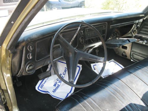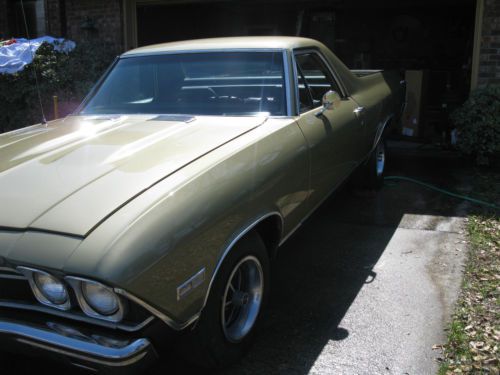 This is my dream car, but change in marital status makes me have to sell. This is a numbers matching first edition SS El Camino. Body restored professionaly approx. 3 years ago and painted back to the original "Harvest Gold" coler. Inetrion is about 80% complete and the engine has been refreshed, I added headers and a little hotter cam. This car is a great collector and so close to being finished it really pains me to sell. This car isnt perfect but it could be. The trim is original, most has been polished but the bumpers need to be re-chromed. The seat and headlines has been redone but the dash needs to be finished. I have not updated the brakes but have upgraded the exhaust and suspension. All the glass is good and the door locks work. I have nothing to hide with this ELKY so feel free to ask questions. Buyer is responsible for shipping and 500.00 down payment is due within 24 hours of auction close. |
