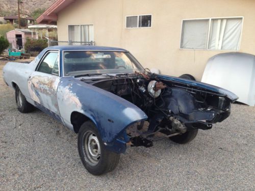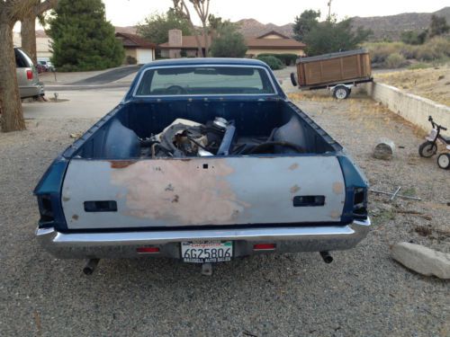 VERY NICE, RESTORABLE, VINTAGE 1969 EL CAMINO This vehicle has a straight body, no rust and from my knowledge has not been in any accidents. The body is in good restorable shape. I have most of the original parts and molding, door handles and taillights. Vehicle has many new items such as the front bumper and newly recovered front seat, and new door panels. I also have new parts that will be included such as the radiator, electric fans and switch etc. I have most of the original outside chrome trim. Headliner is also in good condition; rear-end was removed and sandblasted and painted. Rear-end was also examined by certified mechanic and rendered in good condition. There has been some work done from dings to the body and the tailgate may need to be replaced or fixed. This vehicle has a brand new overhauled 350 complete turnkey engine. With almost $1400 added in parts to the engine such as chrome, distributor, new carburetor and new blower pulleys. I also have the front radiator support. The engine is not installed; this vehicle is a roller and can be moved around. This vehicle has an automatic 350 transmission that has been examined by a transmission shop and billed as being in great condition. This vehicle is a very clean and restorable project. Due to losing my leg in a motorcycle accident I am no longer able to complete the restoration. This vehicle is located in Southern California and has a clean California title. This vehicle is for sale locally so I reserve the right to remove this listing from EBay at any time. There is no warranty on this vehicle expressed or implied and the shipping is the sole responsibility of the buyer. Requirement of $500.00 down by Pay- Pal within 24 hours after sale closes and remainder due within 3 days through Pay- Pal. Down payment will not be refunded. Please contact me if you have any further questions. |
