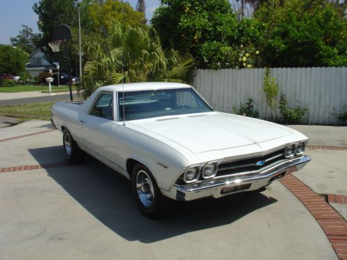 Up for sale today is a nice original california 1969 Chevy El Camino with the rare AC factory option. Car has the original 350 engine that runs excellent with a 350 tranny. Engine runs great fires up right away, no shaking, no noises, no smoke runs perfect and idles nicely. Paint is in great shape has a couple small chips and scratches here and there from being driven. This el camino has also been here in Southern california its entire life so undercarriage is clean and rust free. All lights and guages work on the car. It has power steering and power brakes, and also AC, all AC components are there but air doesnt blow cold. Interior is all brand new and done just like the original. Car is being sold As-Is with no warranty and is the buyers responsibilty to check car prior to bidding. Car is Located in Los Angeles and has a clean title in hand. I have sold a couple cars to overseas buyers and out of state buyers in the past and can offer to deliver the car to any of the shipping companys here in southern california or can give you the numbers to a few shipping companys ive used many times with no issues. Most of my cars end up selling before the auctions even end so i have the right to end the auction early if the car sells locally.