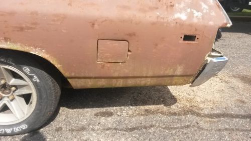 An original Dover White SS 396 El Camino Clear title in hand No engine, no trans, no driveshaft. Originally a power steering, power disc brake, air conditioning car. White with Blue interior and a black vinyl top. There is major rust under the vinyl top and it will need a new roof panel welded in. They sell them at yearone for like $285. Floors appear to be solid and what you see is what you get. I do have the front seat, the metal pieces in the seat are rusted due to the hole in the roof.