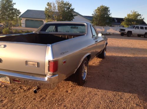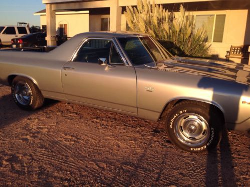 You're looking at an original SS matching numbers El Camino. I painted the car back to the original color Cortez silver one year ago. There are only two things that are not original. They are the interior color and the intake manifold and carburetor. Original intake manifold will go with car. Motor and transmission has been gone through. There is no rust anywhere. It's been a California Arizona car it's whole life. It might not be original miles .There is zero dents. Mostly all new chrome around the outside. Except for front and rear bumper but as you can see they are in really nice shape did not need rechromed. The only reason for selling is to make more room for new toys. If you have any questions please call John at (928)-279-7971 if i don't answer please leave a message and i will get back with you. Thanks.