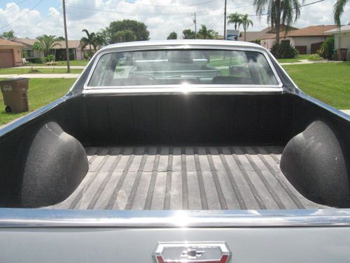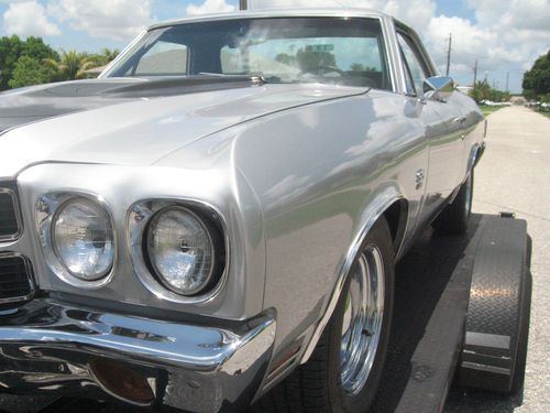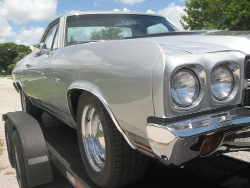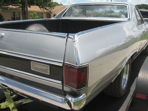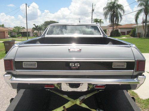 This is a very nice big block Chevy 454 SS EL Camino. Great new paint new dash, the orriginal SS dash was a liitle warn so i replaced it to match the condition of the rest of this classic car. She was an orriginal AC car but not opperational now, alll the components are there with a new compressor but not hooked up yet. Brand new cowell hood, that is identical to the orriginal. New reproduction stereo that is not hooked up. Brand new front and rear bumpers new grill trim and bed top trim. The longer I have it the price will goup as I finish the few small items that are going to be compleeted. Please call 239-three four nine-0090.