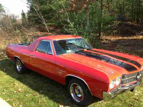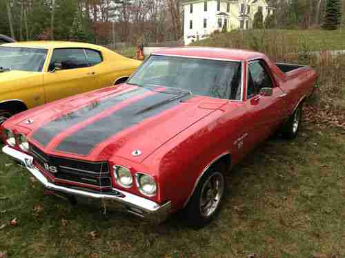 I HAVE FOR SALE A 1970 BIG BLOCK (402 - 4 SPEED) EL-CAMINO P/S P/B COWL INDUCTION HOOD WORKS AS IT SHOULD, BODY IS LAZER STRAIGHT AND RUST FREE ALONG WITH THE FRAME, INTERIOR IS IN GREAT CONDITION WITH NEW RUGS, BUCKET SEATS AND CONSOL, ENGINE WAS REBUILT BY AN EARLIER OWNER, THIS CAR WAS PURCHASED BY ME IN OREGON AND SHIPPED IN A CLOSED TRAILER TO ME IN NEW HAMPSHIRE. VEHICLE NEEDS NOTHING. RUNS SMOOTH, SHIFTS WITH NO ISSUES. GREAT EL CAMINO .SHIPPING WILL BE AT THE NEW OWNERS EXPENSE. I HAVE THE RIGHT TO CANCEL AUCTION AT ANY TIME VEHICLE IS FOR SALE LOCALLY.