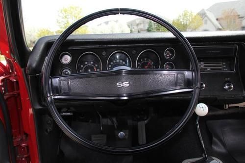 Mechanics: Numbers Matching L-34 396/402 cid V8, 350hp Numbers Matching M-20 Muncie 4-Speed Manual Transmission 12 Bolt 3:31 Posi-Traction Rear End Dual Exhaust Front Disc Brakes Front Sway Bar Power Steering Aluminum Radiator Period Correct Clamps New Delco Battery
