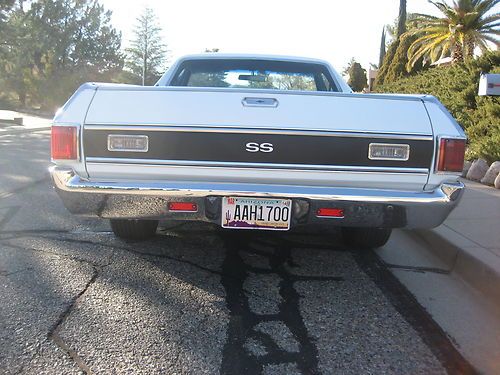 1970 El Camino. Nice straight southern California truck with good paint. Runs and drives as it should. All gauges work. Clock and radio are not working. Stainless trim shows normal wear. Front and rear bumpers re-chromed. Actual miles on vehicle are unknown. For more information call Phil @ (520) 458-7712