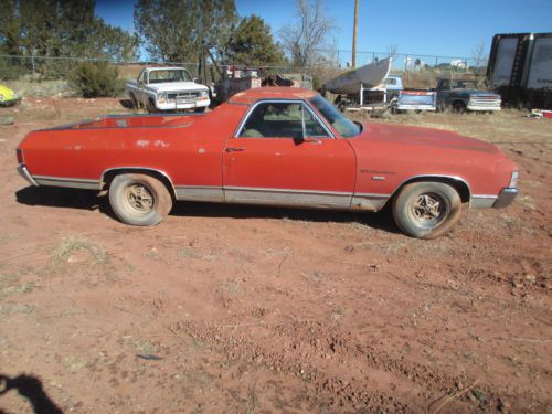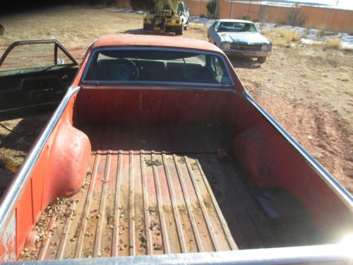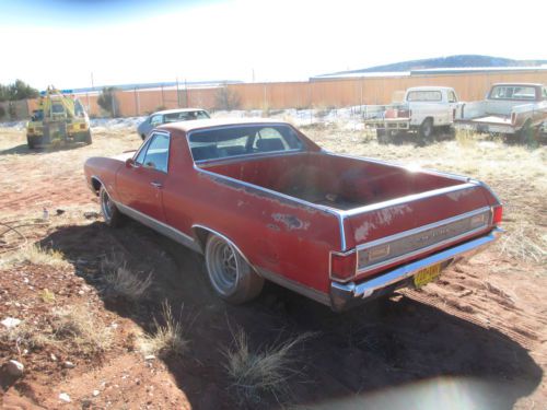 Selling some of my collection. This is a complete El Camino. I bought it about 25 years ago with a bad transmission. As with lots of things, I thought I was going to fix it up, but never did. It's been sitting this whole time. It's not an SS. It's got A/C and most of the options they came with. I am located 12 miles east of Albuquerque, NM off I-40. There's room to send a transport truck in to get it. When you win, pay a non-refundable $500.00 deposit by Pay Pal within 3 days after winning. From there you've got 30 days to come get it. After the 30 days are up, there will be a $5.00 daily fine assessed until you do get it, payable in cash at the time of pick up. If you don't get it after 60 days of winning it, you forfeit your deposit and I will re-list it. I am not a hard ass. I will work with you as long as you make the effort.