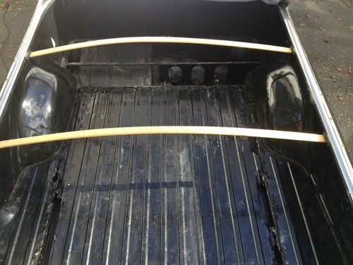 For sale is the very best of fun driver muscle cars - a triple black 1971 Chevrolet El Camino. The car has a black exterior with a black standard interior and a black vinyl roof. The car was painted prior to my ownership a few years ago. The quarter panels where replaced and a cowl hood was added. The car has white SS racing stripes. The rims are "FW" coded 15x7 rally wheels mated to BFG radial T/A's. Overall the body is in sound condition but there is some rust in the bed and a couple small spots on the floor and lower fender. I have a new bed pan which goes with the sale of the car as well as some new in box trim pieces.