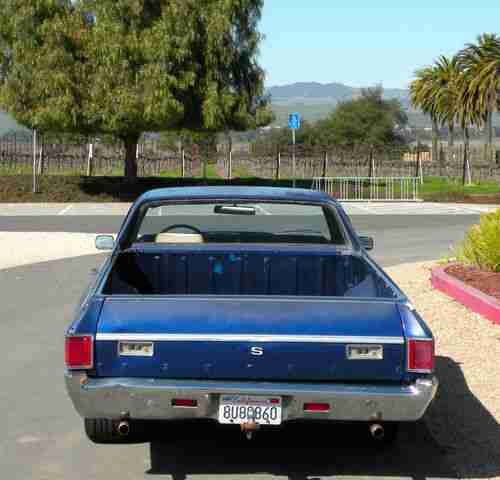 1971 SS Chevrolet El Camino. A/C car with bucket seats, SS mag wheels, V8, 350 auto transmission. Engine starts and runs strong, transmission shifts as it should. Car has been sitting for the last 2 years, last California registration 2011. New carpets and new door panels. Solid floors make this a great candidate for restoration or enjoy as is. Car is in Pleasanton California. Buyer is responsible for shipping and all incurred shipping costs. Deposit of $500 due within 48 hours of auction close. Full payment required within 7 days of auction close.
