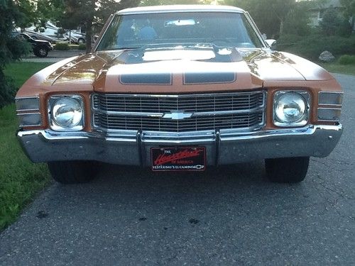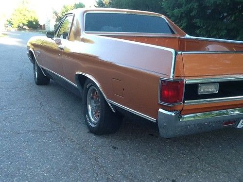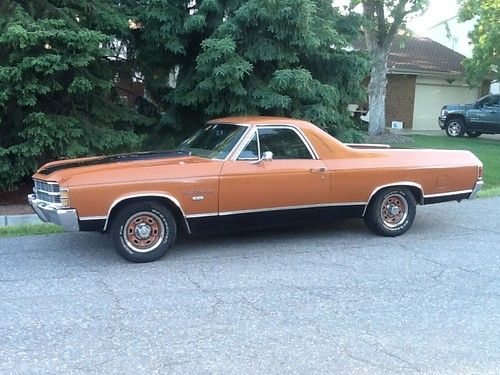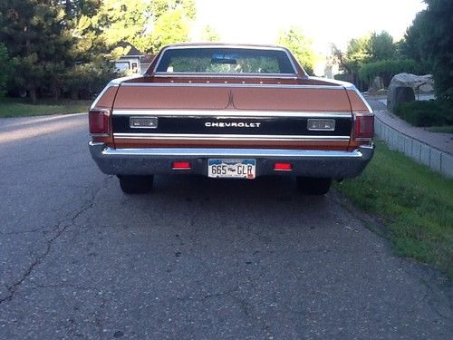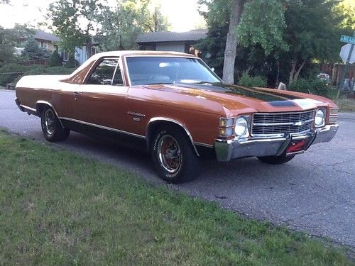 1971 Chevrolet ElCamino, 89996 original miles. Engine is a 350, has approx 25000 miles on rebuilt with mild cam.Turbo 400 auto transmission, 12 bolt rear end.Very clean car, interior redone a few years ago,still very clean.Power steering,power brakes.Factory air car, a/c works but needs recharged.any questions please call Jeff @ 303-808-5463.Im listing car for a friend that is not a computer guy.if I cant answer your questions I will get you in touch with him. Car is located in Denver ,Colorado.