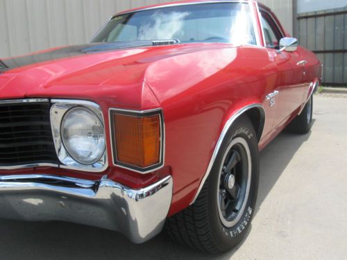 1972 CHEVROLET EL CAMINO SS CLONE 350 CI 350 AUTO TRANS P/S P/B A/C (NEEDS COMP ) FRONT DISK BRAKES HI RISE INTAKE HOLLEY CARD ELECTRONIC IGN HEATHER'S DUAL FLOW MASTER 3 INCH EXHAUST NEW REBUILT TRANS SS RALLY WHEEL WAS REPAINTED ALL NEW INTERIOR TRIM CHROME AND GLASS ABOUT 6 YRS AGO STILL LOOKS GOOD PAINT IN GOOD SHAPE INTERIOR NICE RUNS DRIVES GOOD GOOD POWER DRIVE IT ANYWHERE SOLID TEXAS TRUCK ASK QUESTION THANKS