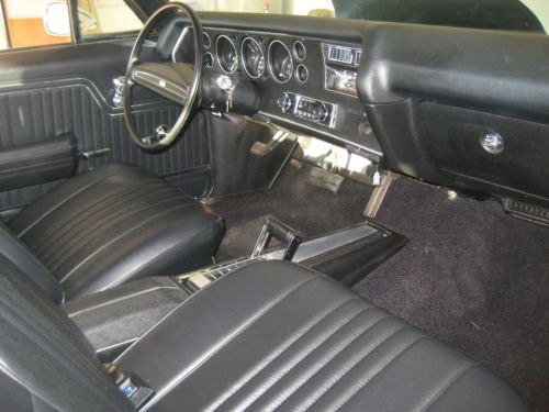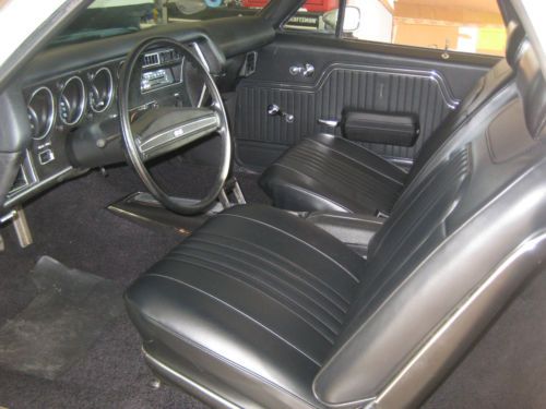 1972 El Camino SS clone, bucket seats w/ console floor shift and SS dash. New GM Perf Parts crate 350 c.i. engine, 330hp/340tq, Vortec heads, Holley 600cfm carb, HEI distributor, TH350 trans w/high stall convertor. Runs great- No smoke, no leaks, no burning fluids, no ticks/knocks/bangs.Power steering/Power Frnt Disc Brakes/Factory A/C (no compressor). All new belts/hoses, all new filters (including trans), shocks all around, and new tires. Interior has been completely restored from the carpet to the headliner with all high end restoration parts. New factory correct vinyl seat covers with inner foam, and new driver side bottom spring. All gauges working (except factory clock), new Retro-sound stereo with Mp3 player, new factory correct door panels, and all new chrome handles/knobs/seat & console trim. Original southern car w/solid floors, frame, and bed. Rear of bed has 2-3 pin holes and both lower front fenders have what looks like some older repairs behind the wheel well. Recently painted but not show quality. Very solid car that just needs a little more love. All reasonable offers considered, car is not currently registered so I cannot bring it to you. Serious inquires only, cash money always makes the price go down.