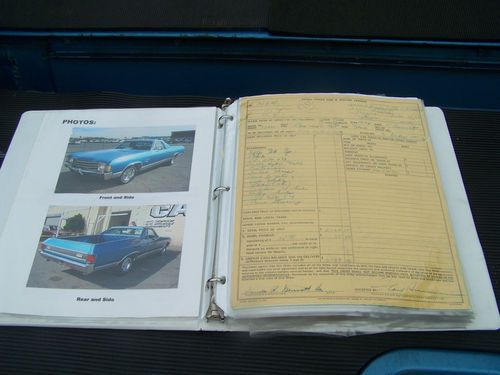 1972 Chevrolet El camino all original , numbers matching , 54,000 mi V8 350 , 4barrel automatic turbo 350 transmission, 12 bolt rear, power steering manual brakes, dealer installed air condition , very good condition , no rust, no bondo, nice paint , nice interior, runs great, not too many original nice el camino's left. Vehicle to stay on premises until full payment is cleared or cash.