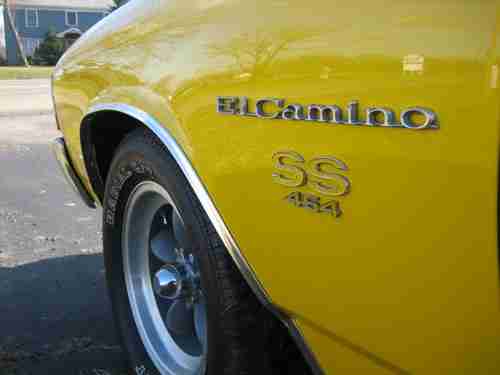 We are selling a beautiful 1972 El Camino SS 454 eng and 4 speed trans. I just lowered the buy it now price, need to make room for some new inventory. This is a real SS 454. The W in vin proves it was born a 454. You could not get a 454 eng in a 1972 El Camino without getting a SS so has to be a real SS. Has the round gages. There were only a little over 1400 Chevelle & El Camino SS 454 4 Speeds built in 1972. Estimated only about 400 were El Caminos. How many are left? Estimated about 200. This is one rare El Camino. Investment quality it has a beautiful bright yellow professional paint job in base/clear with white SS stripes and cowl hood. Motor and 4 speed trans professionaly rebuilt recently. Eng. now has over 450 hp. This El Camino was built in Van Nuys Calif. and spent its life on the west coast. Just brought up here to N.Y. a couple months ago. Nice stright body and clean and rust free under. You should come and see this beautiful El Camino. Runs and drives as good as it looks.