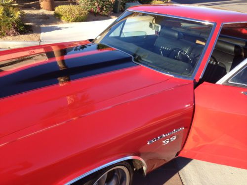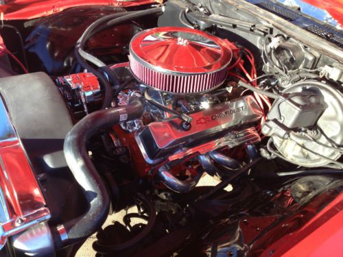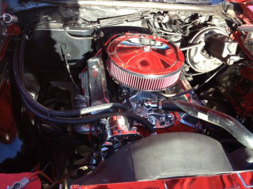 Up for sale is a stunning piece of american history, the 1972 El Camino SS. This car has been garaged for a while and has been in a non-smoking environment. The exterior is a rich cranberry red with few scuffs complete with black stripes complimenting the hood. The bed is also red and is spotless due to the car just having been painted. The interior was just redone also featuring black leather seats and new headliner and racing wheels. The car also has a new 3:36 Posi Rear end and a 17*8 front, 18*9 rear. Under the hood it carries a 350ci, mild-cam, ceramic headers, new radiator, and an Edlebrock manifold complete with dual Flowmaster exhaust. Guaranteed one of the most pristine Caminos out there! All electric, lights and guages work. Contact me if you have any questions.