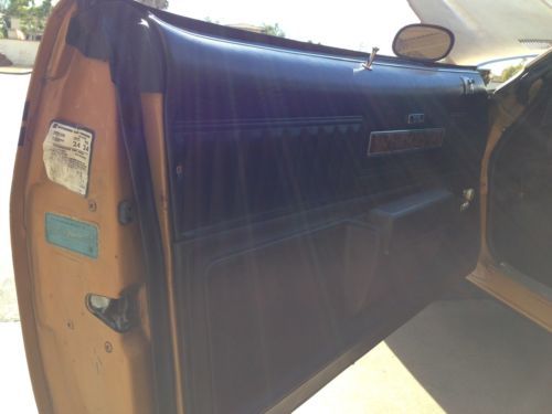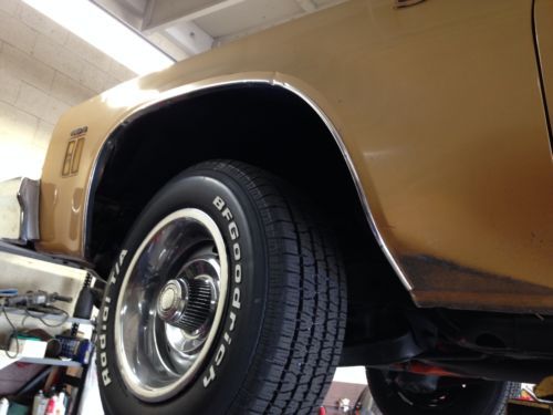 BOUGHT CAR TO FOOL WITH CAUSE I HAD ONE NEW. & I SINCE INSTALLED FRONT WHEEL BRNGS, SERVICED POSI. REAR ,TRANS, OIL.. HEI DIST. OIL SEAL, 275-60 R 235-70 F ,BFGS ON FACT 8/15 RALLEYS. INSTALLED CARPET/INSULATION ,& HAD SEAT (850.00) redone ,not generic OPG. I JUST GOT MY 69 OUT OF PAINT AND DECIDED I DONT WANT ANOTHER PROJECT, cause I AM ANAL, so here is a perfect running,starting, imagine a q-jet carb that functions flawlessly, car that could use a new top & paint, door panels & dash are great! Radio is d.o.a. as is clock. I have docs. for most miles ,past owners & buildsheet that was under seat