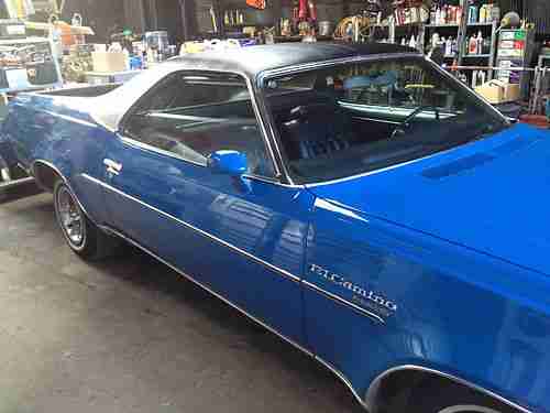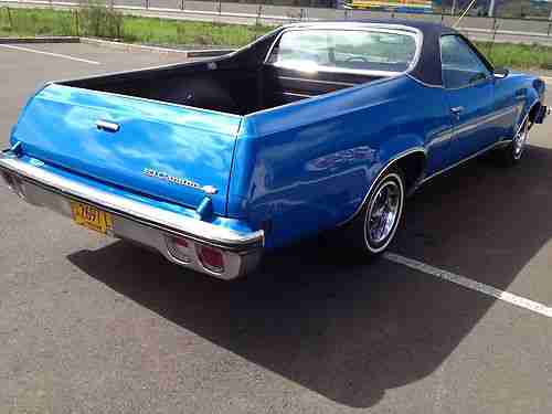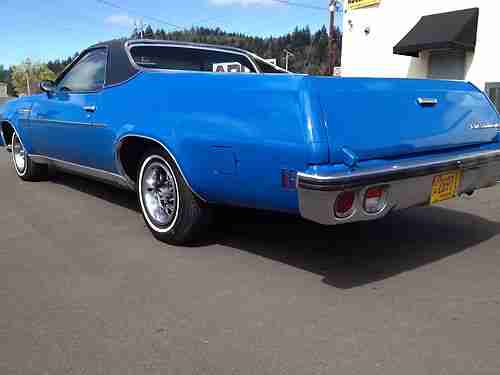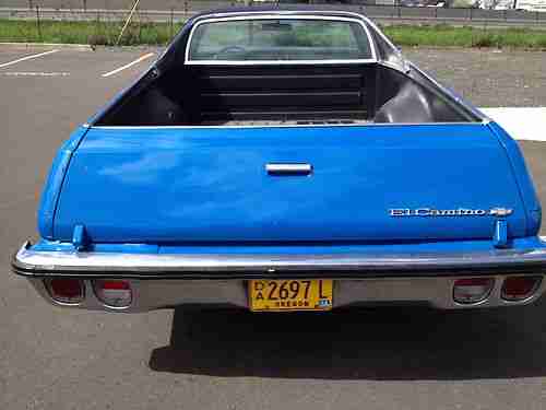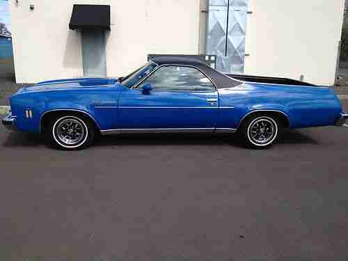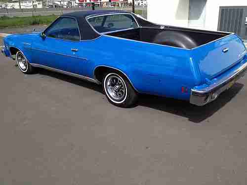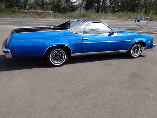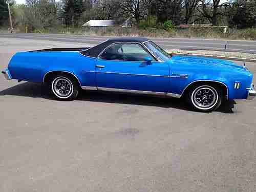 Up for Bid! This is a beautiful 1974 Chevrolet El Camino Classic pretty much all stock and appears to have original 350 V8 That starts right up and purrs! The transmission is automatic that shifts excellent like it should. The car is very solid and has solid rockers, solid bed, solid rear quarters, and floors seem good as well. All the gauges seem to work great. Car has been repainted, along with newer vinyl top. The car has mag style wheels. Looks sharp and lots of compliments! :) Runs and drives excellent. Nice tight steering with power steering. Has front disk brakes! That stop her beautifully! Newer exhaust sounds great! Good rubber. All the chrome is in pretty good shape as well. This is not a show car! Has minor imperfections. Chips, scratches. But overall a very nice car! The dash is like new! Seats are in great shape, has spare tire, original jacks looks like. Car could use a new carpet kit, or a carpet patch on driver side by hood popper. Clean title. This car is a rare find in this kind of condition! Call 541.301.6862 with questions. Car is sold as -is condition. I encourage potential bidders to come take her for a test drive! Wont be dissapointed! Buyer must pay in full within 3 days of end of auction. I prefer wire transfers, will take check but must clear before pickup. Thanks for looking and good luck on bidding! Priced to sell!