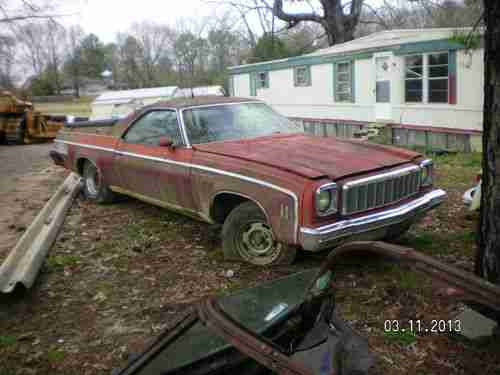 you are looking bidding on a 1974 chevy el camino. car has some rust this is a project. v8 automatic. transmission is out sitting in the bed. there is no title alabama does not title 1977 an older vehicles. you will receive a notarized bill of sale. there will be a mandatory nonrefundable $500 deposit required within 48 hours after auction ends. for any and all questions please call 256-303-6098 thanks and happy bidding